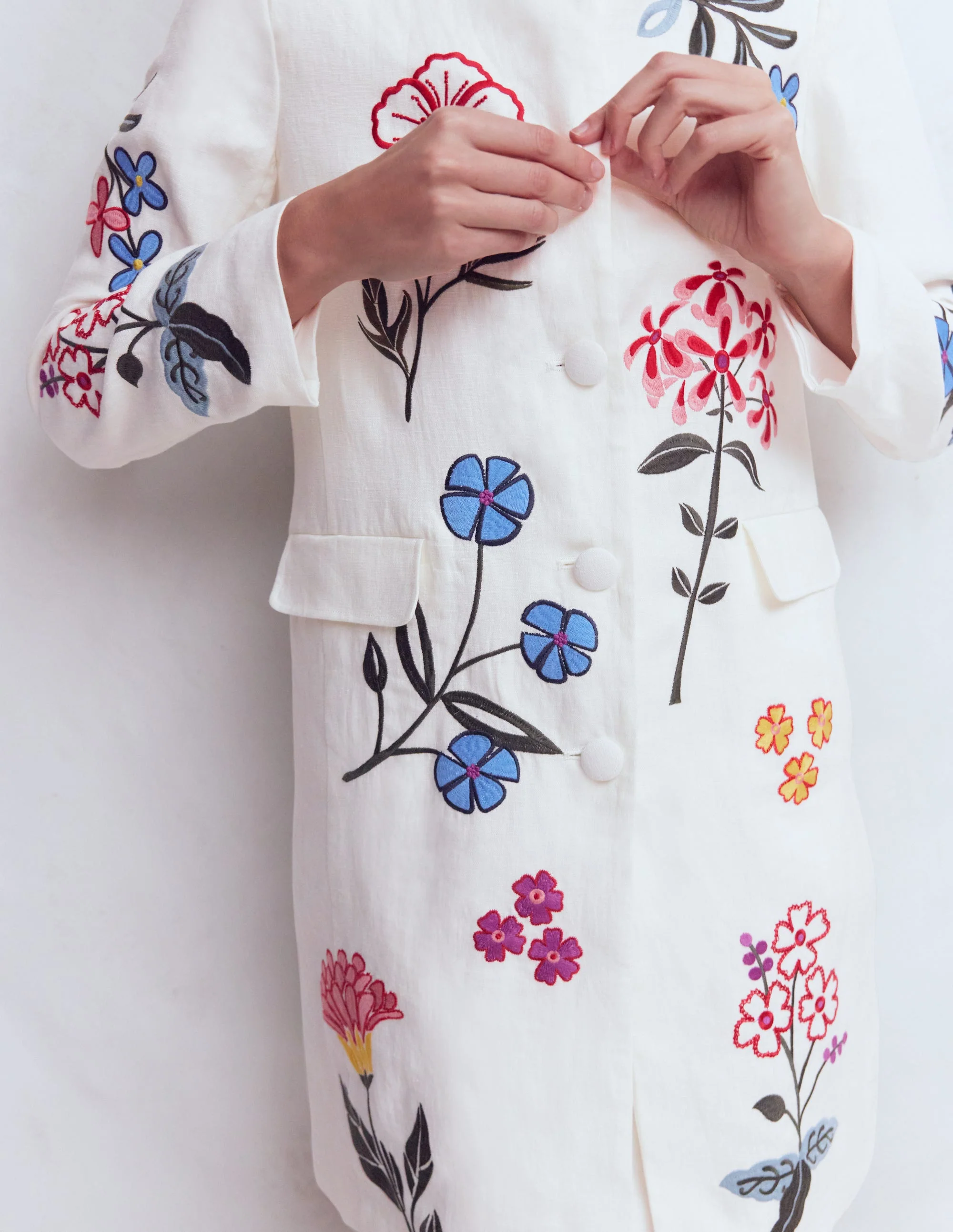 -70%Embroidered Linen Coat-Ivory Embroidered—