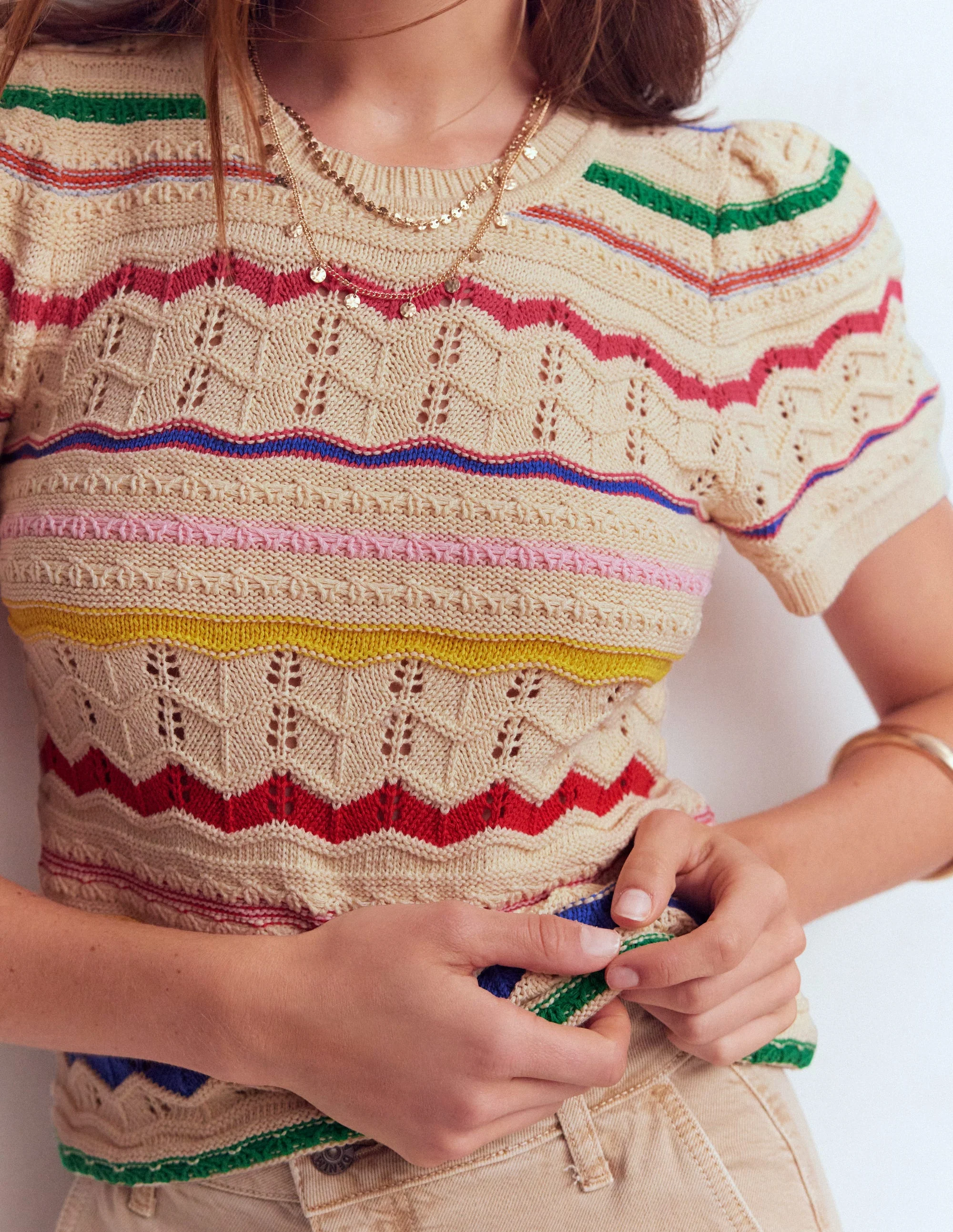 For days when a basic cotton tee feels too casual you can rely on Monica. The lightweight pointelle stitching, gently puffed sleeves and bright colours make this style a trusted office staple. It'll also look great tucked into our double cloth shorts on holiday.
